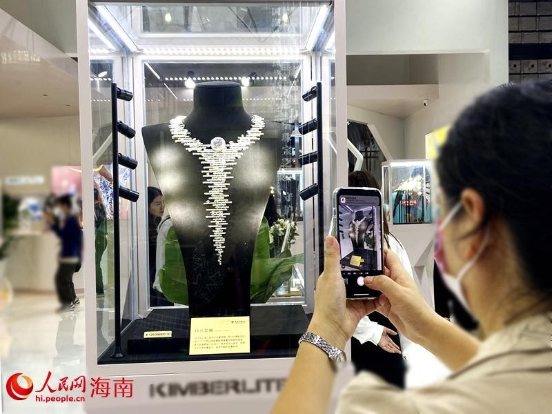 第三届消博会上珠宝展品吸引观众驻足拍照。人民网 陈海燕摄