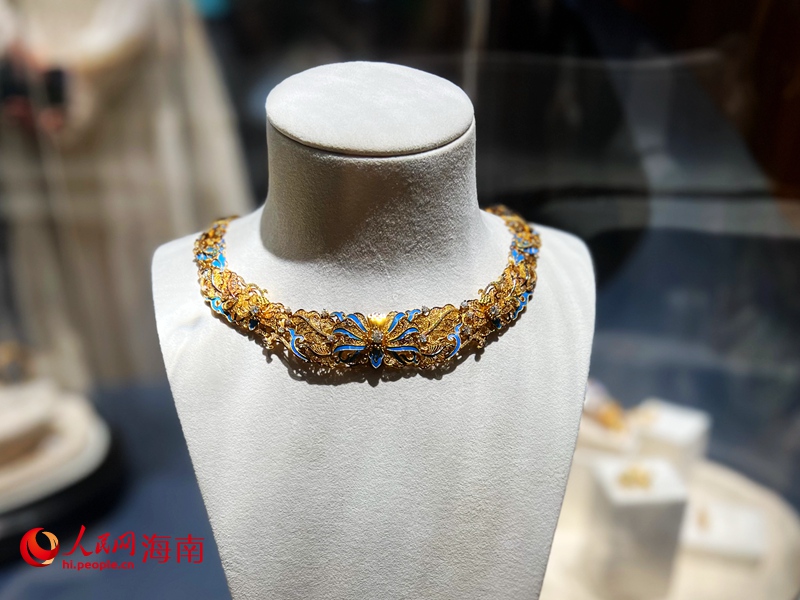 第三届消博会上展出的黄金饰品。人民网 蒋成柳摄