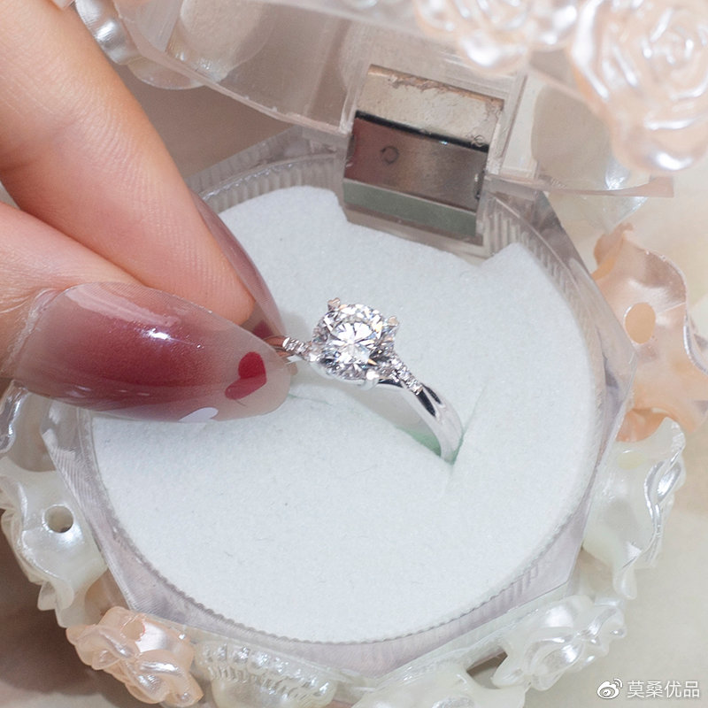 设计大方,360°环绕镶嵌莫桑钻,周围没有遮挡物,光线从不同角度进入钻石,就像钻石本身自带的璀璨,神圣不可侵犯,自由兼具神秘感