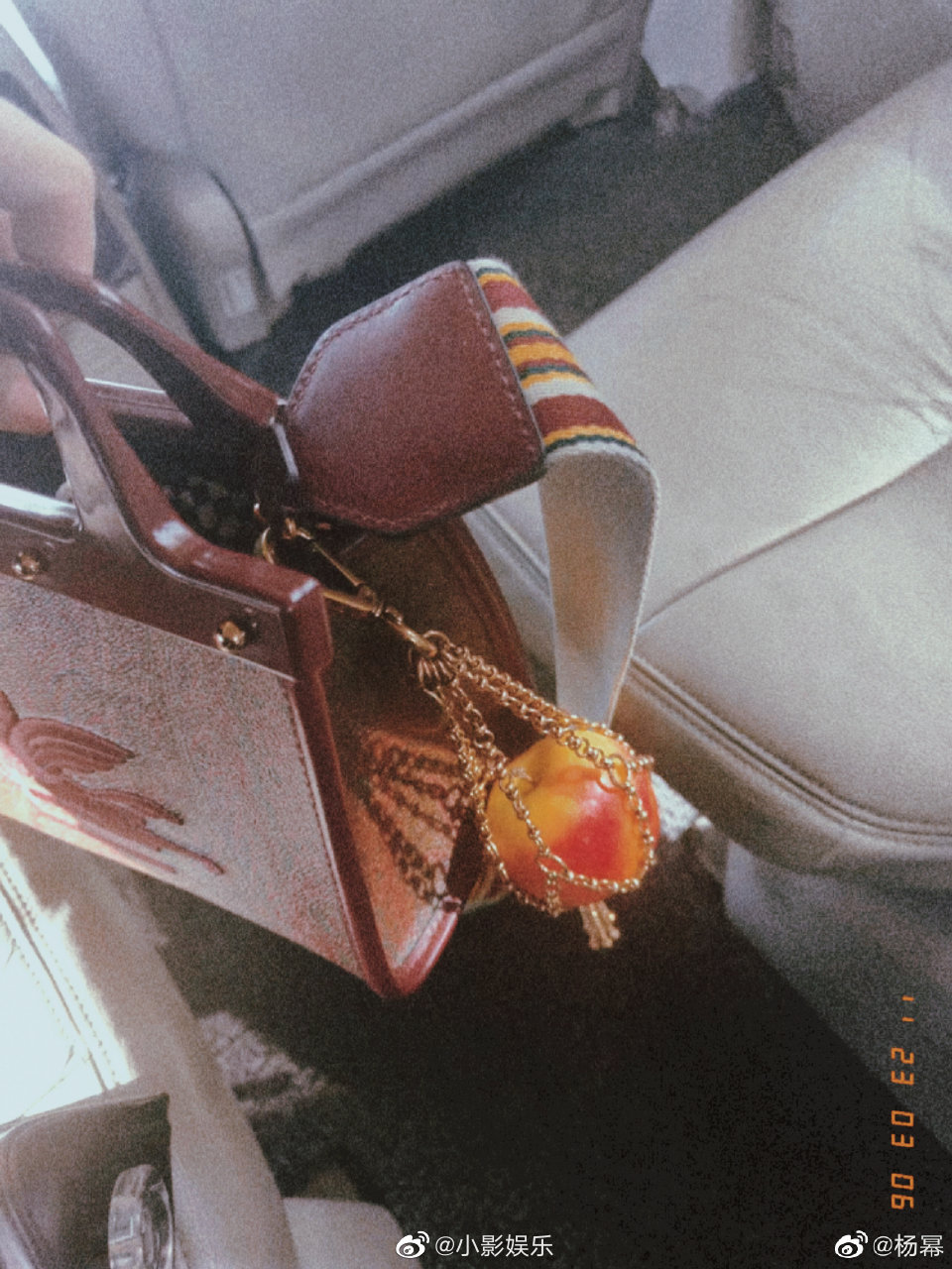 #杨幂包上挂苹果#所以这是一个饰品,然后自己放进去的真苹果?