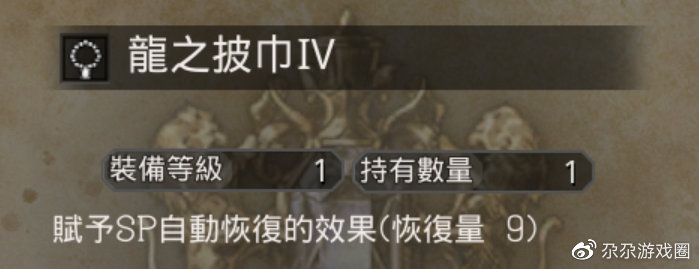 还有“黑龙之披巾”,也是可以增加我们的SP上限以及我们SP自动恢复的效果,这个饰品是我们在挑战追忆之塔的黑龙以后必定掉落的,只是难度也不低,我们可以刷日常的时候顺便准备把他打倒拿到这个奖励。