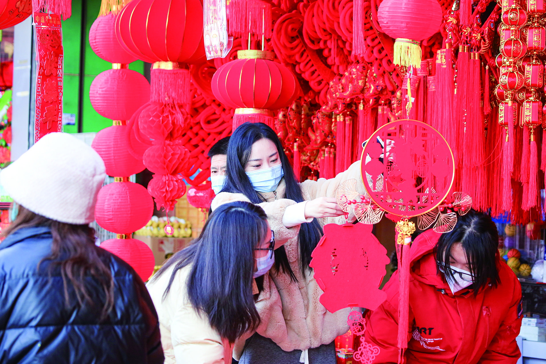 春节临近,茸城年味渐浓。市民忙着置办中国结、红灯笼等新春饰品。