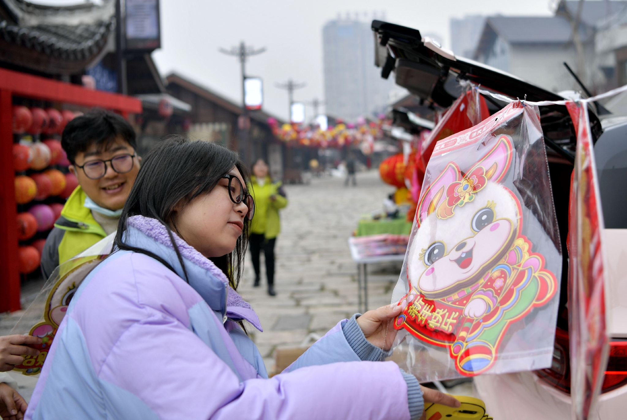 1月12日,人们在湖北省恩施土家族苗族自治州宣恩县兴隆老街选购新春饰品。新华社发(宋文摄) 1月12日,人们在湖北省恩施土家族苗族自治州宣恩县珠山镇选购新春饰品。新华社发(王俊摄)