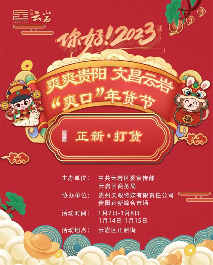 据悉,你好!2023 爽爽贵阳·文昌云岩良知行系列活动之“爽口”年货节由中共云岩区委宣传部、云岩区商务局主办,贵州天眼传媒有限责任公司、贵阳正新综合市场协办,本周末(1月14日-1月15日)活动还将继续,大家千万别错过。