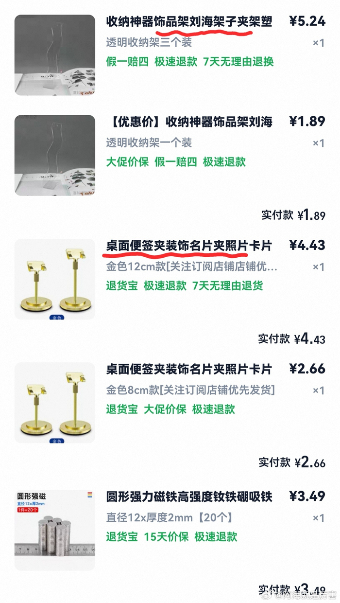 再搜饰品架美甲架,图上这么大的五块钱仨,磁铁三块五20个,自己用点胶粘上就可以吸吧唧了!