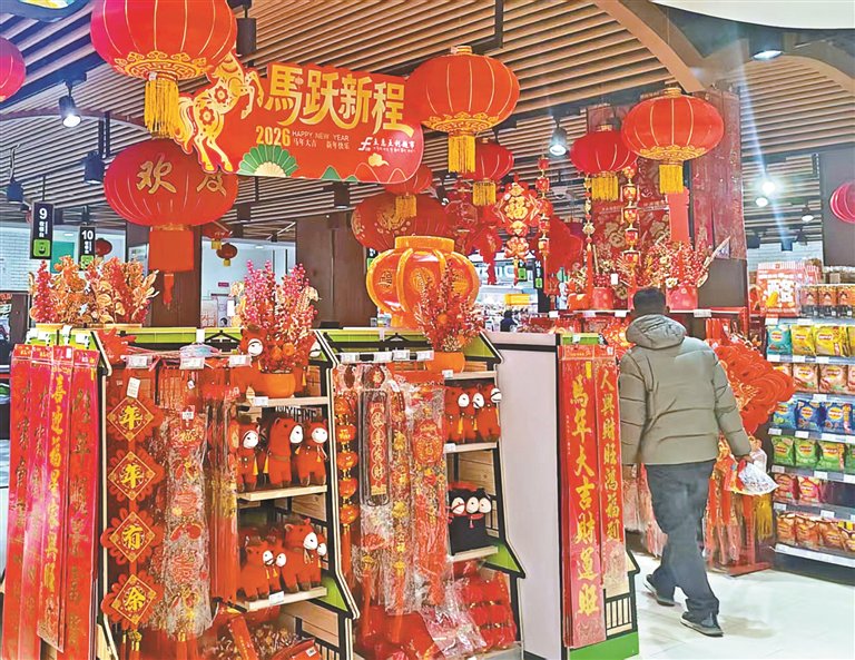 图为日喀则一超市内货架上摆满新年装饰品。